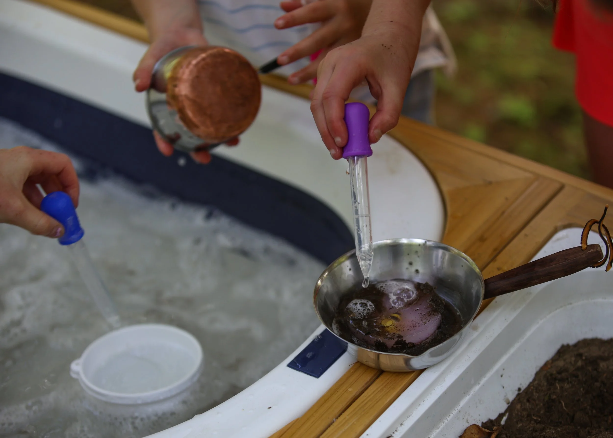 The outdoors allows children to build real life skills while exploring all the sensory wonders and studies have shown being in the outdoors can help calm your body (need citation).