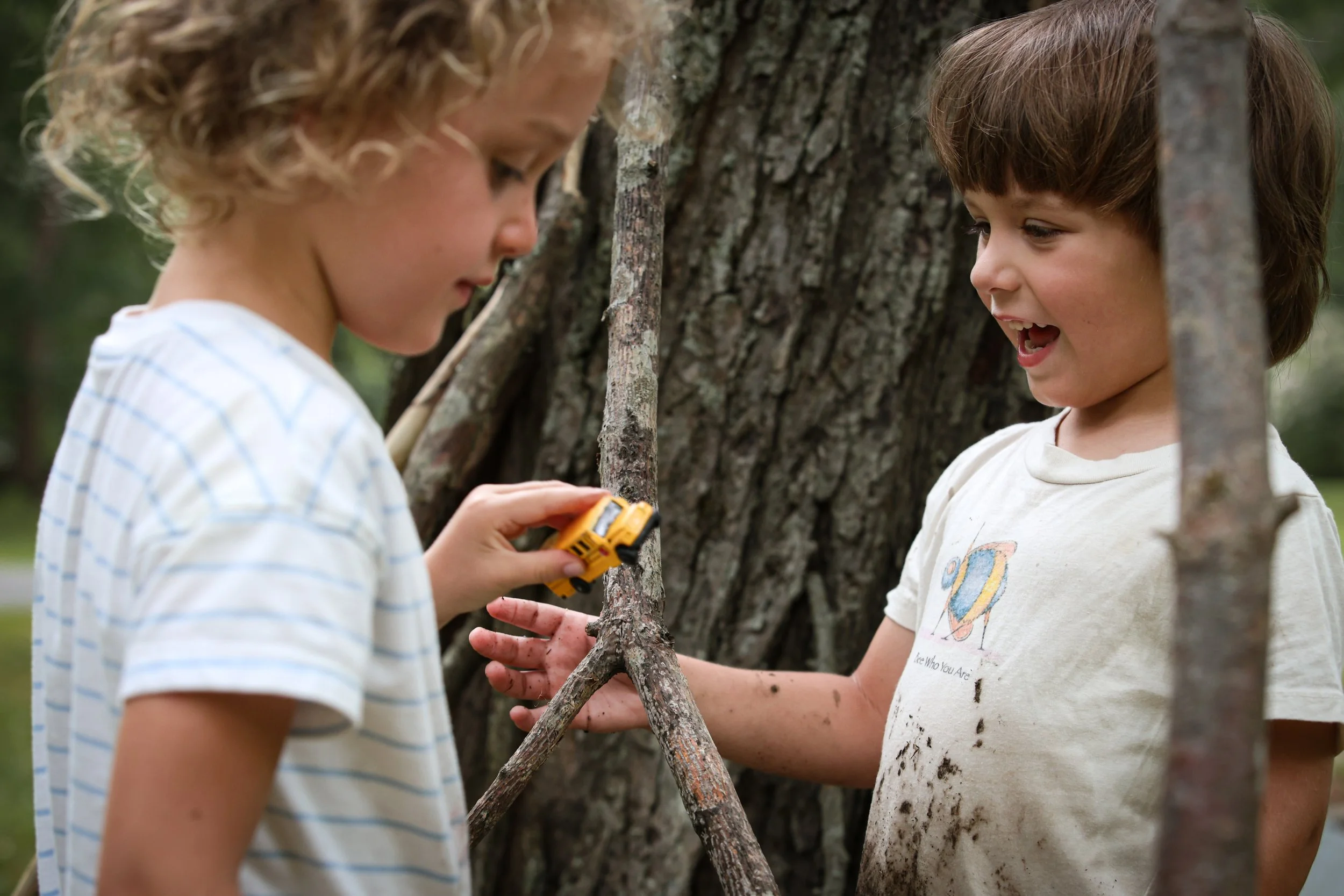 Rain, snow, or sunshine—we will be outdoors! As long as it’s safe (no thunderstorms), we embrace whatever the day brings. A little drizzle or fresh snowfall just adds to the adventure. Please be sure your child comes dressed for the weather, because every season offers its own opportunities for exploration, play, and skill-building.